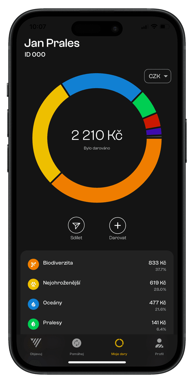 100 % obdržených darů jde přímo na určené oblasti a projekty.